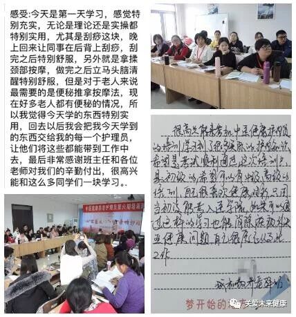 医疗辅助护理员(中医健康养老护理员)培训给予学员的收获是厚实而丰满的,同样学员们的培训体验也是深刻且欢喜的。我们的学员都来自于北京市各个养老服务驿站,有年轻人也有中年人,但脱离学校生活都已久远,五天封闭式的集中培训把他们带回“学生时代”,学员们感觉既欣喜又新鲜。 紧张的学习节奏,丰富而专业的培训内容,给他们带来的体验充实而意义深刻。特别是身边这么多同龄同行业的伙伴,学习交流起来共同语言特别多,收获巨大。有的学员说,有幸和从事养老服务的同学一块儿学习中医健康养老知识,作为一名刚刚入行的新人,看到各位同学在学习中医理论、急救知识时专注、认真的状态,这一切深深打动了我,深感咱们国家养老服务护理行业在未来一定是非常美好的,相信一定能赶超那些养老产业发达的西方国家。